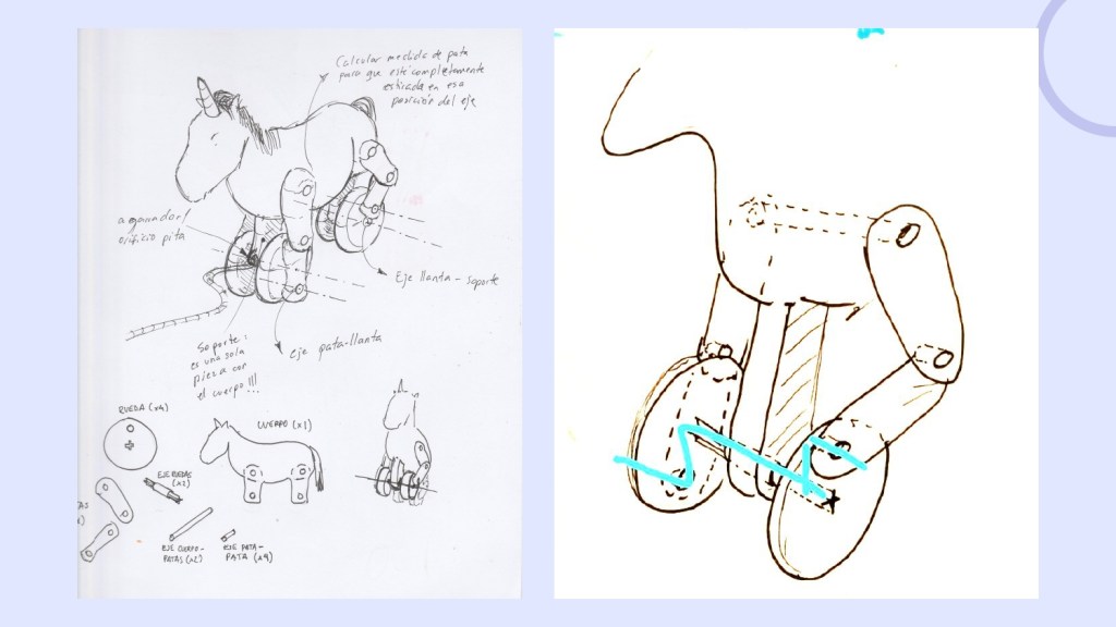 A partir de referentes de juguetes se desarrollaron bocetos y pruebas